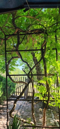 На территории участка есть отдельное здание с гаражом, комнатами и навесом, которые можно использовать по вашему усмотрению. Двор плавно переходит в хозяйственную зону с садом, огородом и теплицей, где можно выращивать свои собственные овощи и фрукты.